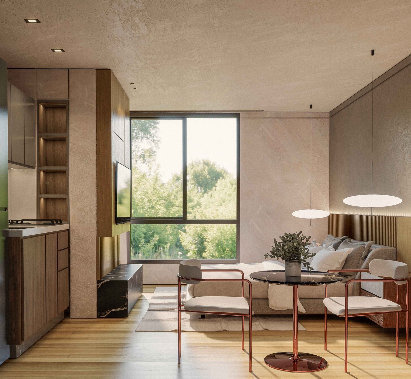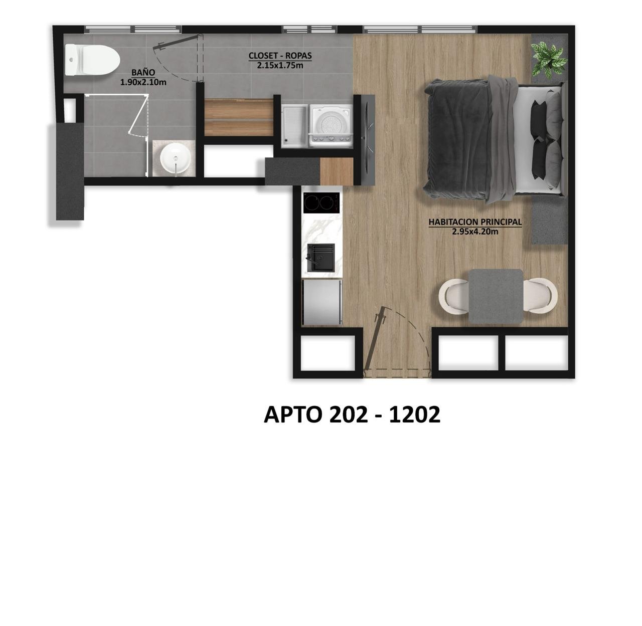 - Estudio con cocina (opción con y sin nevera)